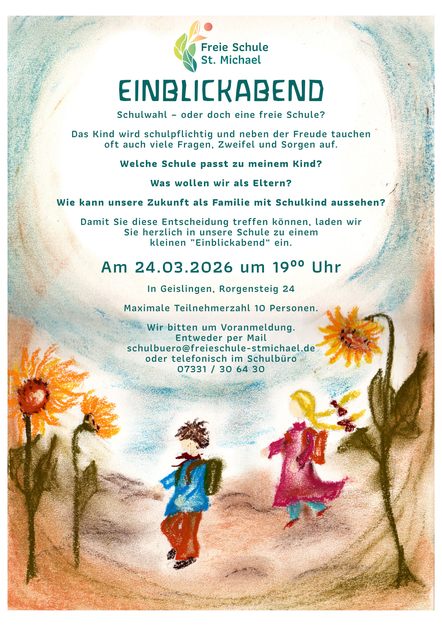 entweder per Mail schulbuero@freieschule-stmichael.de oder telefonisch im Schulbüro 07331 / 30 64 30