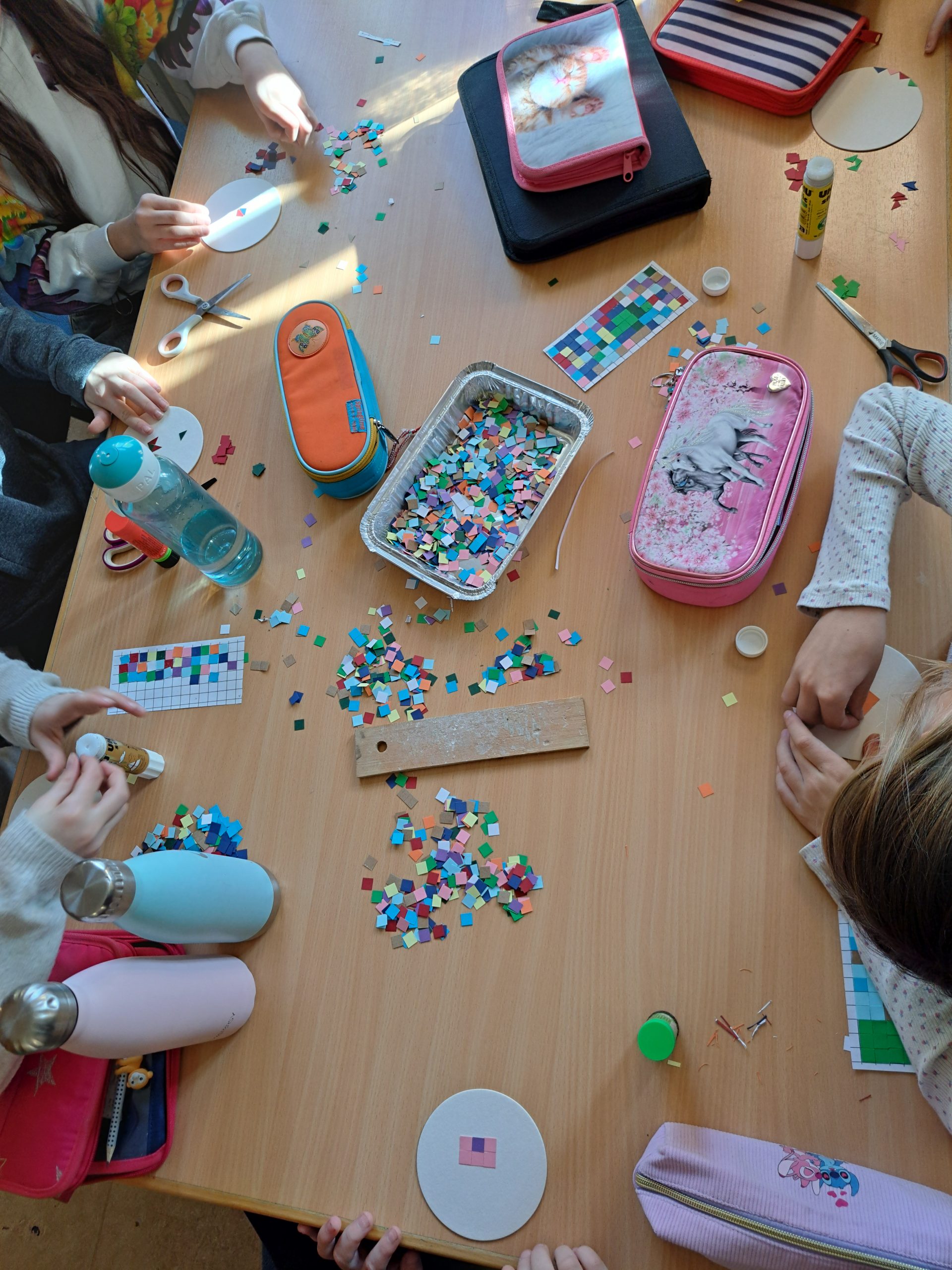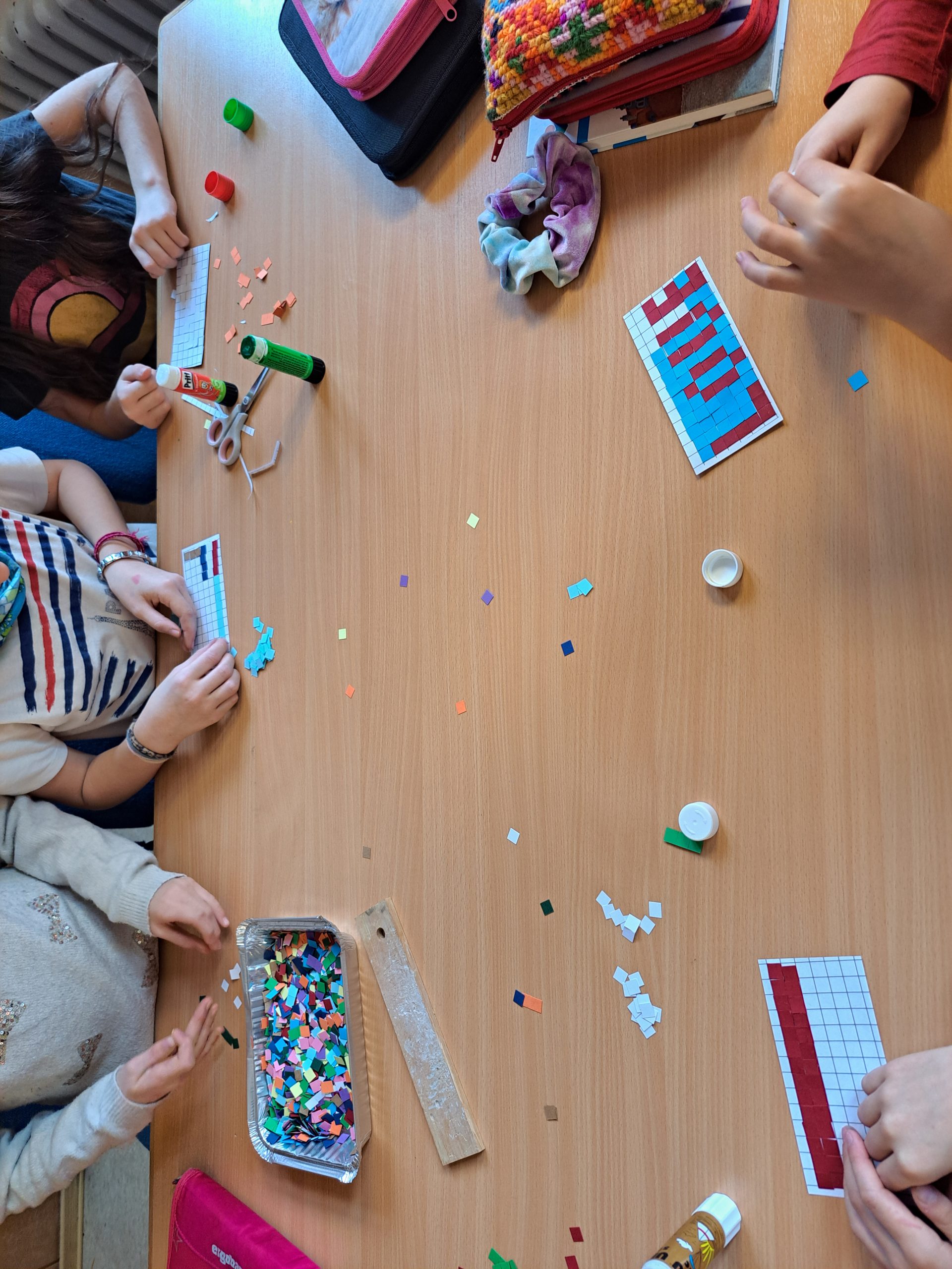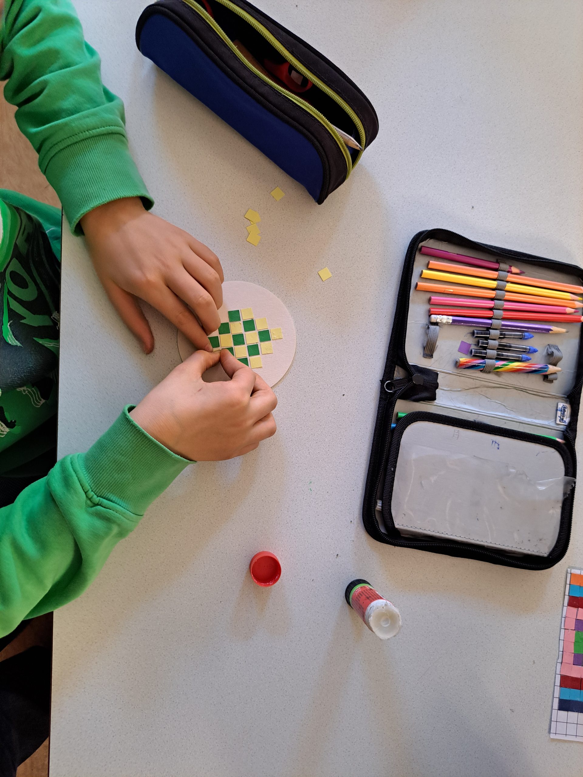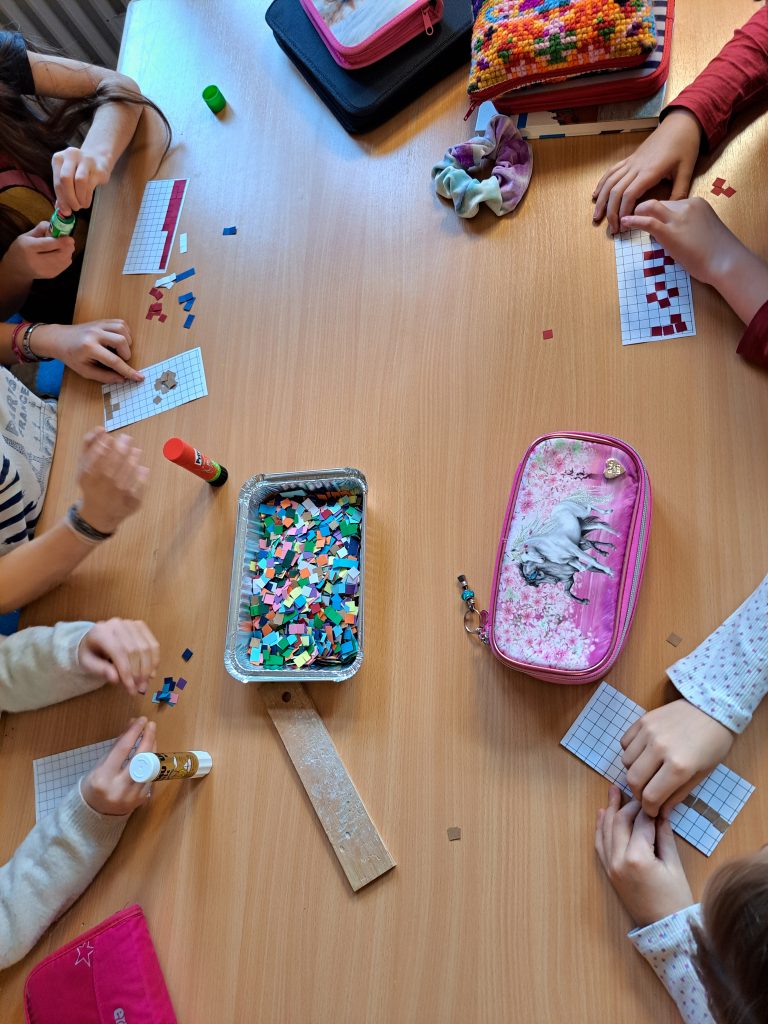 Im Zuge der Handwerker-Epoche arbeiten die Schüler und Schülerinnen der Klasse 3/4 an selbstgestalteten Mosaiken: