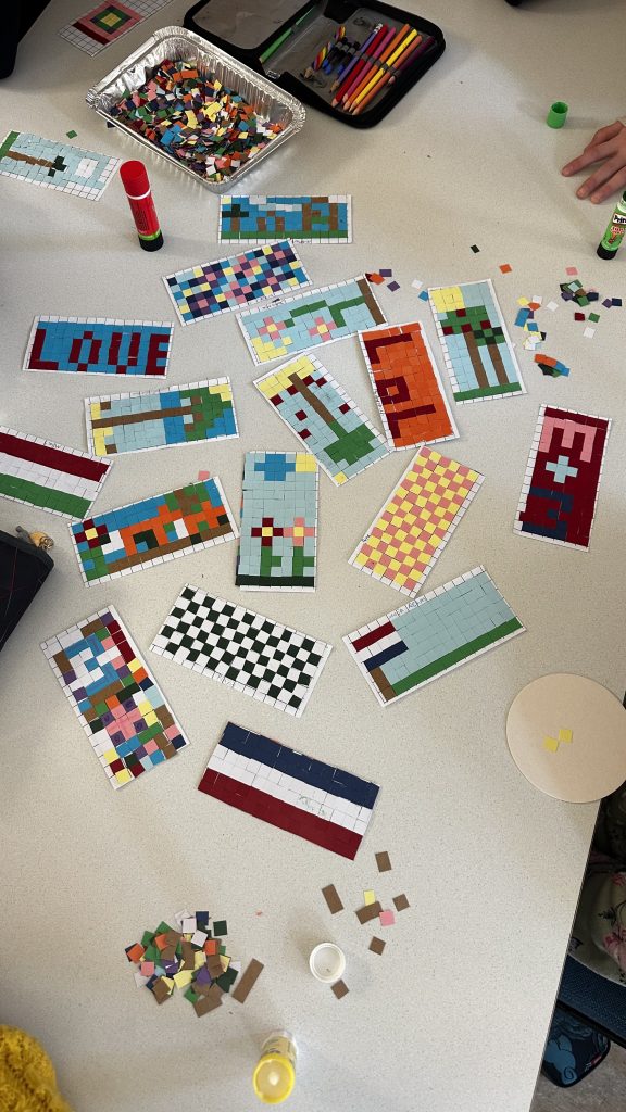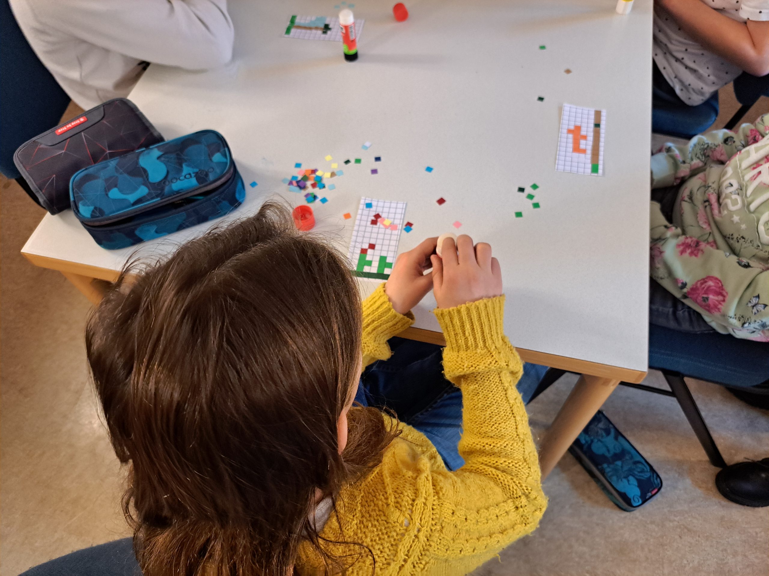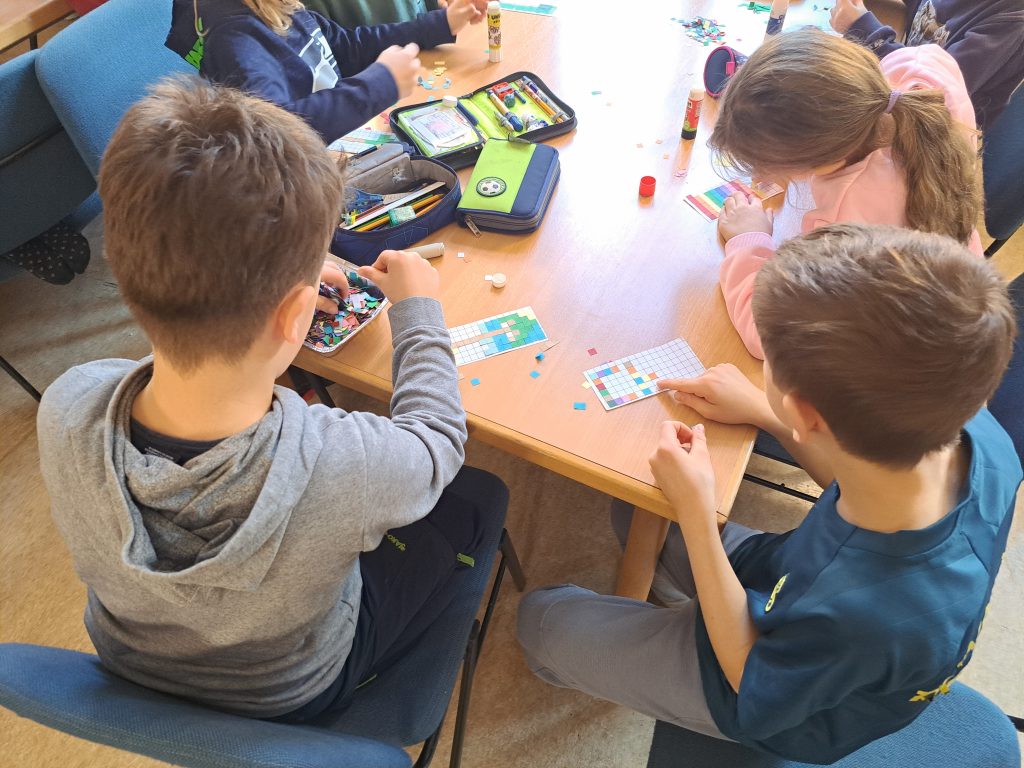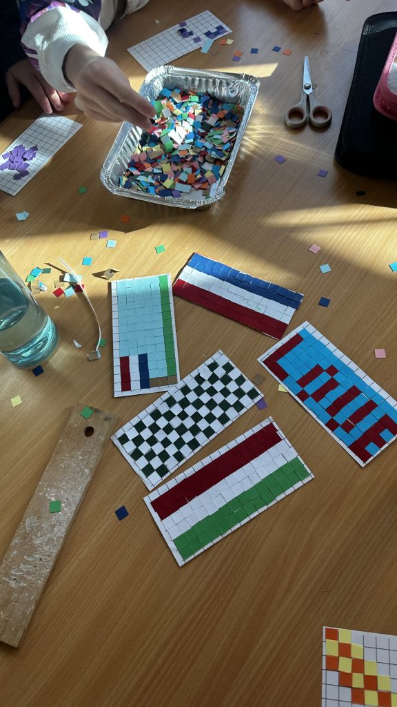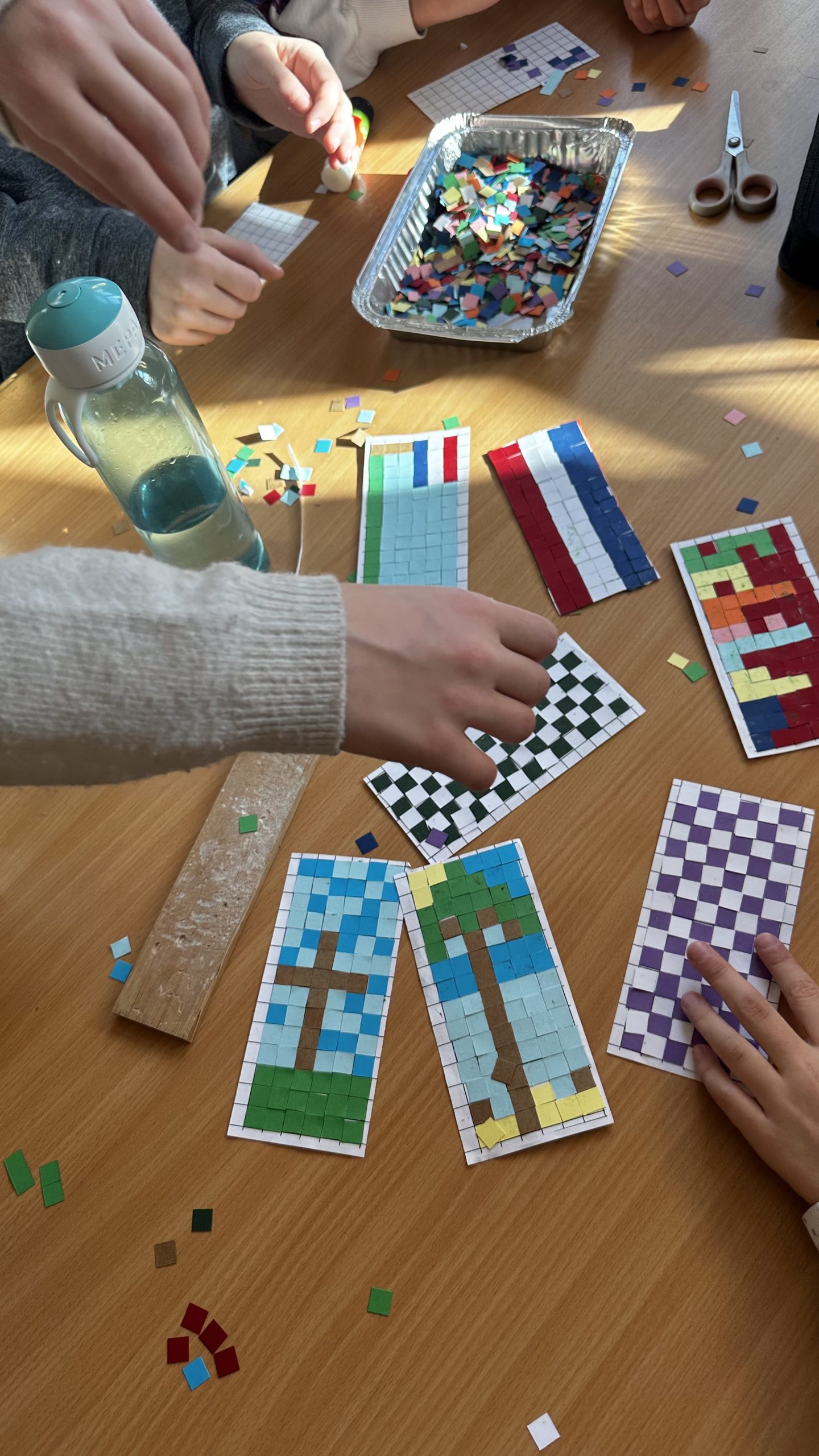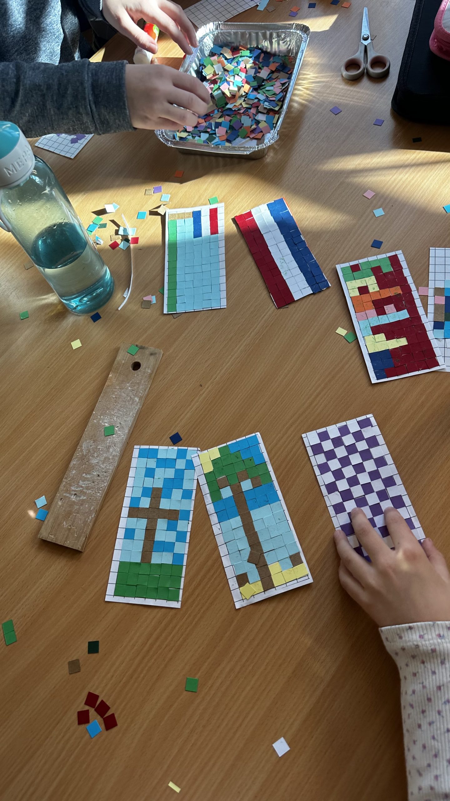 Im Zuge der Handwerker-Epoche arbeiten die Schüler und Schülerinnen der Klasse 3/4 an selbstgestalteten Mosaiken:
